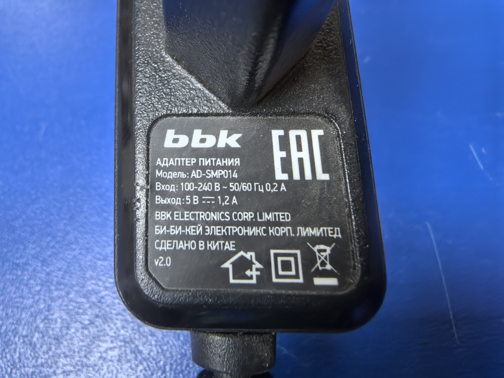 Адаптер 5В 1.2А 5,5*2,5мм AD-SMP014 для цифровых приставок BBK