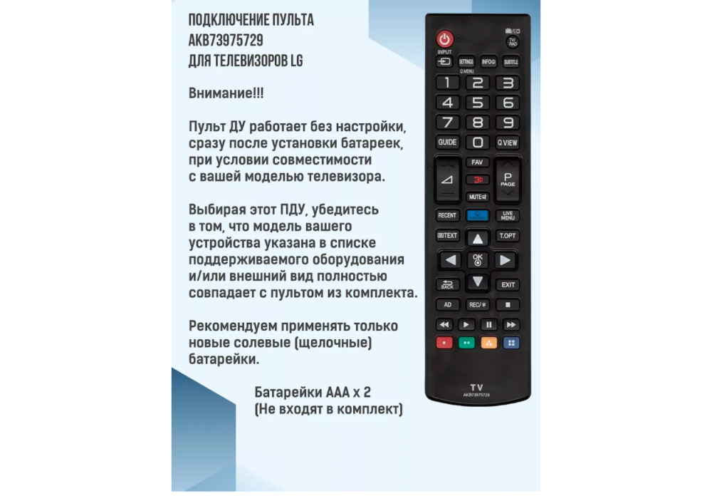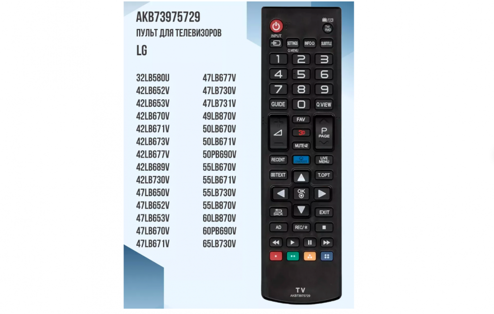 Пульт LG AKB73975729 для телевизора 32LB580U, 42LB652V, 42LB653V, 42LB670V, 42LB671V, 42LB673V, 42LB