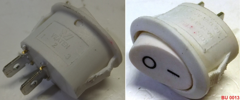 Выключатель 1-клавишный без подсветки 2 контакта овальный KCD4 26х18х29мм 16A белый BU0013